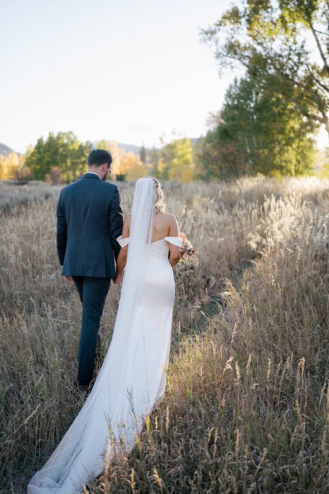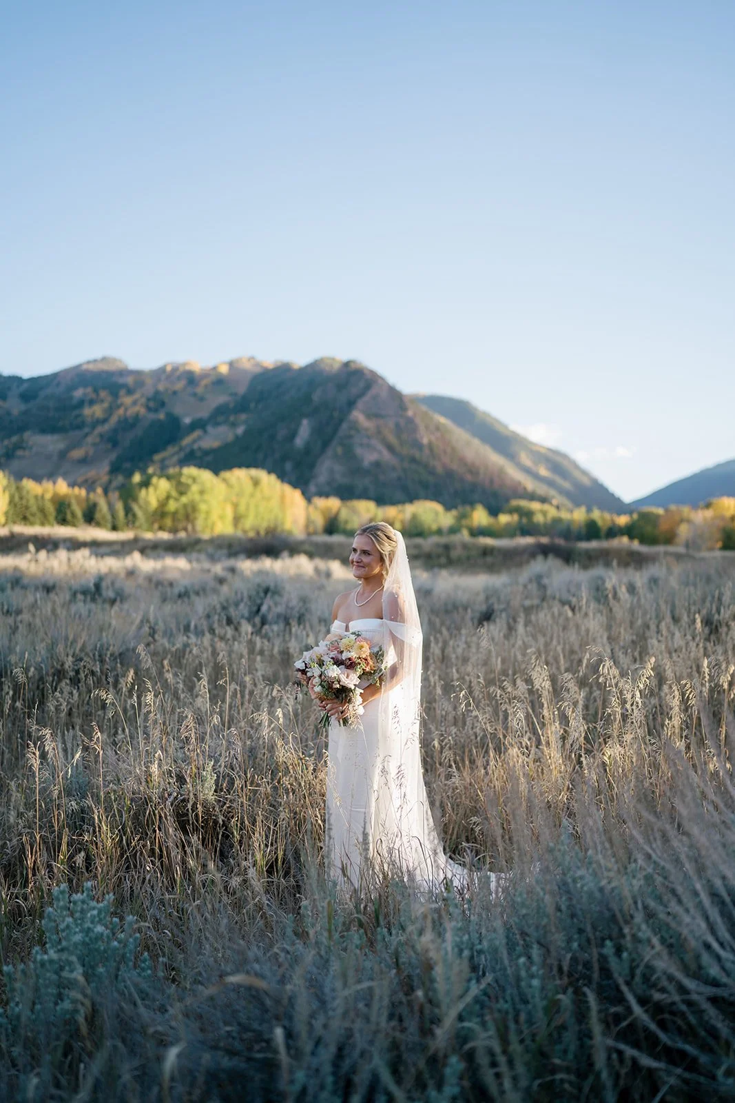 On a crisp day in Aspen, CO, A+N celebrated their union in an expansive field that seamlessly melded into the majestic Rocky Mountains. The chosen color palette, a vivid yet sunset-inspired ensemble, proved to be the perfect ode to the onset of fall in the enchanting landscapes of Colorado.